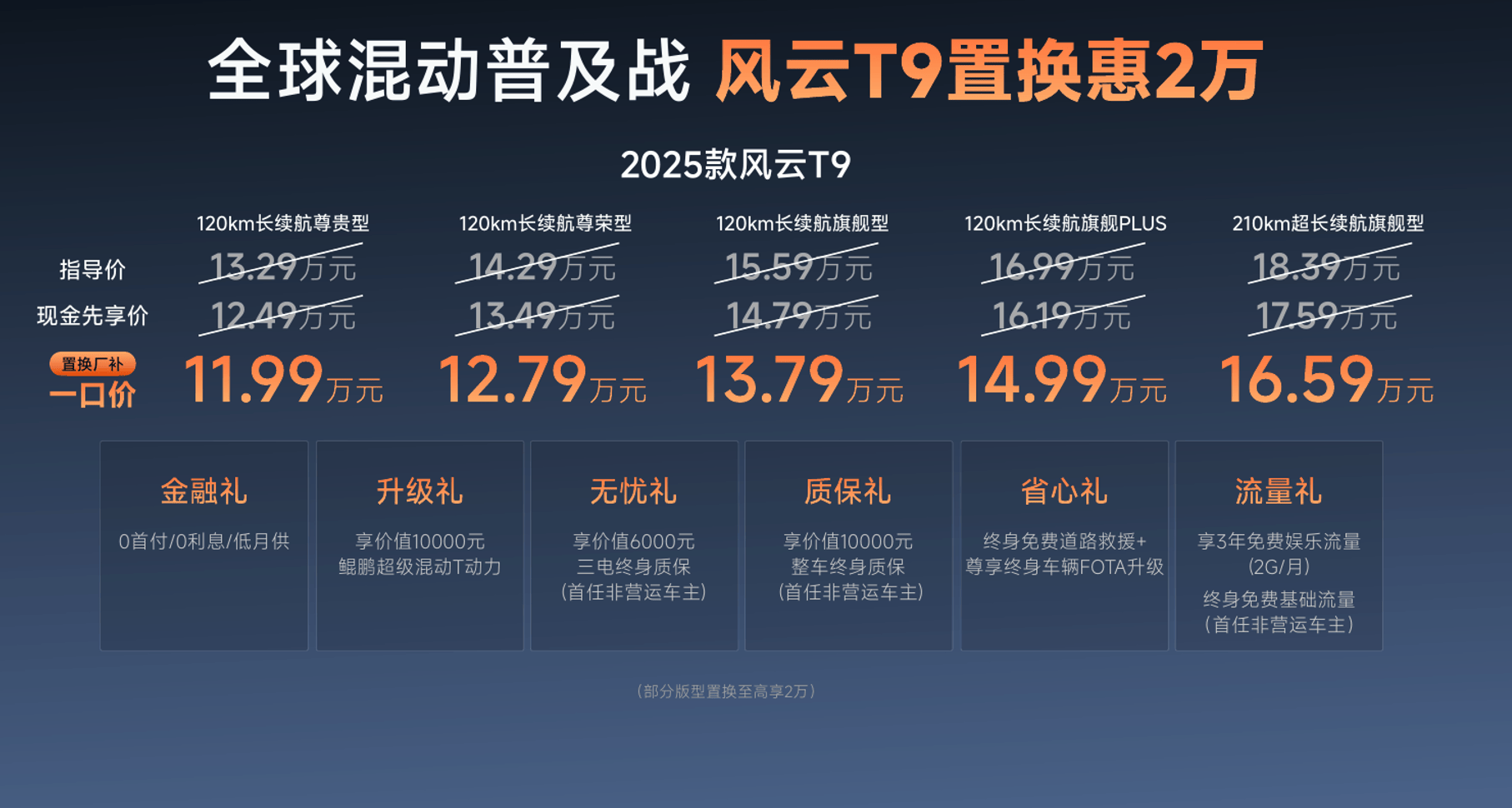 風(fēng)云T9煥新上市,置換廠補(bǔ)一口價(jià)11.99萬(wàn)元起。