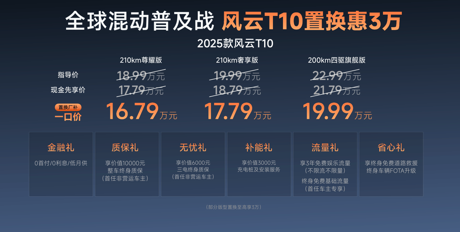 風(fēng)云T10上市,置換廠補(bǔ)一口價(jià)16.79萬(wàn)元起。