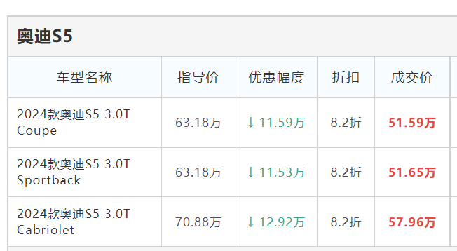 有消息稱,奧迪S5又開始降價,優惠幅度將近12萬。
