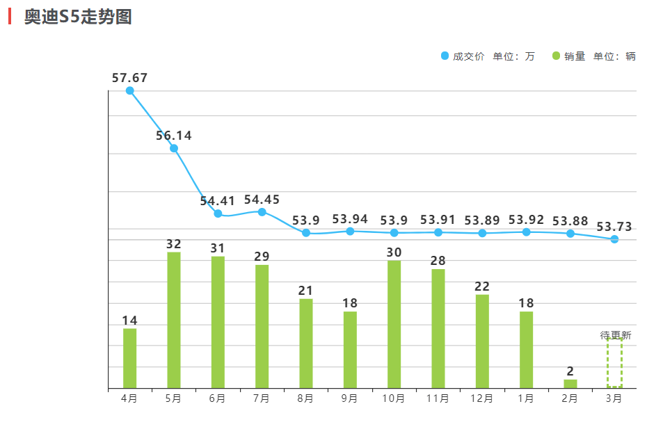 2023年,奧迪S5全年總銷量為1121輛 ,平均每月銷量93輛,然而2025年2月銷量僅2輛。