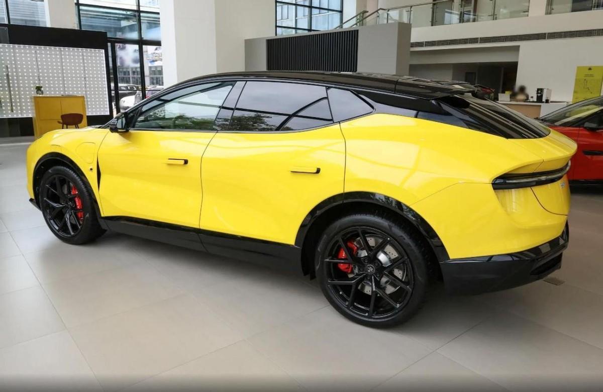 從車身側(cè)面不難看出它優(yōu)雅的超跑SUV風(fēng)格,尤其是從A柱開始便一直保持著較小夾角的車窗設(shè)計(jì),在保證駕駛視野開闊的同時(shí),通過車身外觀撞色處理,以及側(cè)裙、翼子板比例的收縮,實(shí)現(xiàn)了輪高比接近1:2的視覺效果,這讓其看起來更顯“戰(zhàn)斗”。車尾的設(shè)計(jì)符合路特斯的家族語言,一道貫穿式LED尾燈穿插在尾箱蓋和車側(cè)導(dǎo)風(fēng)槽中,營造出流動(dòng)的力量感。