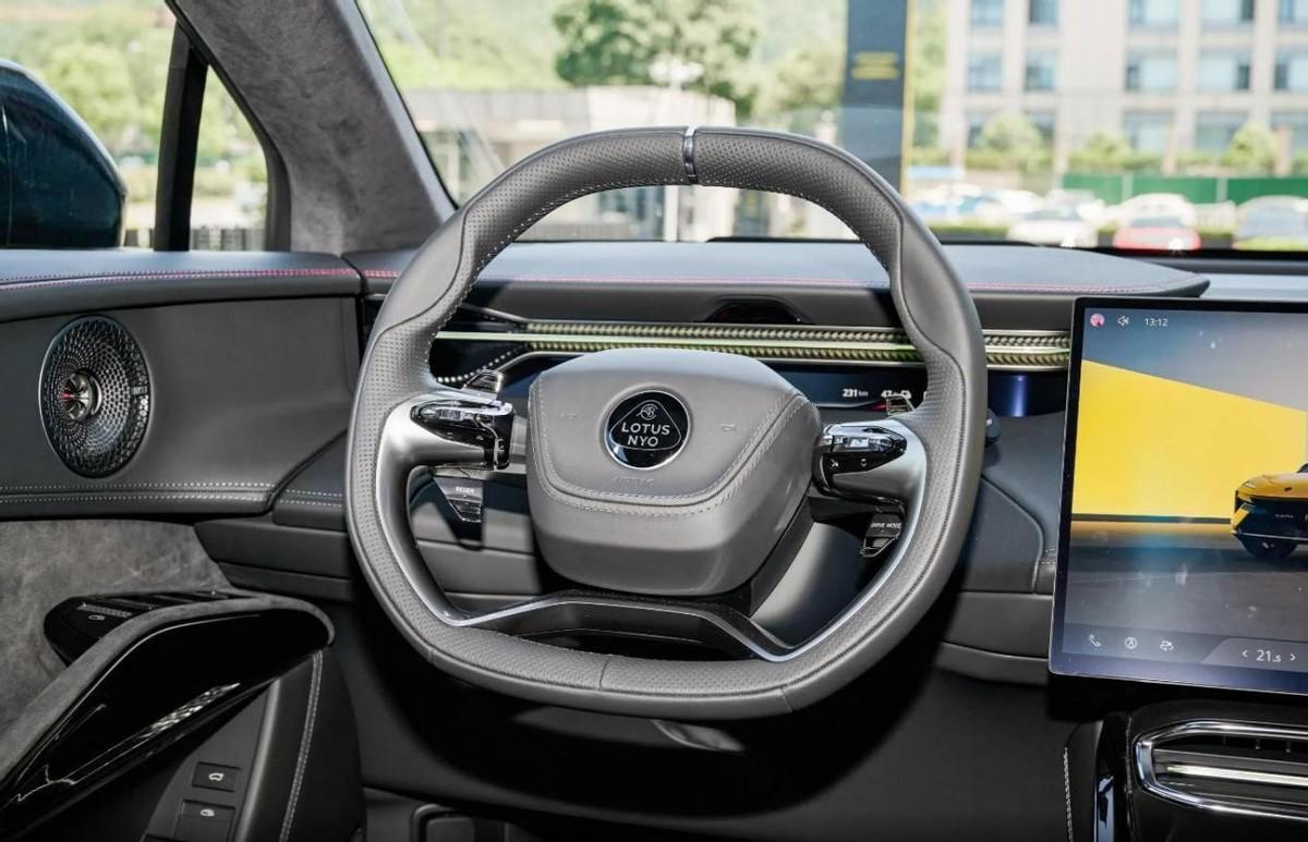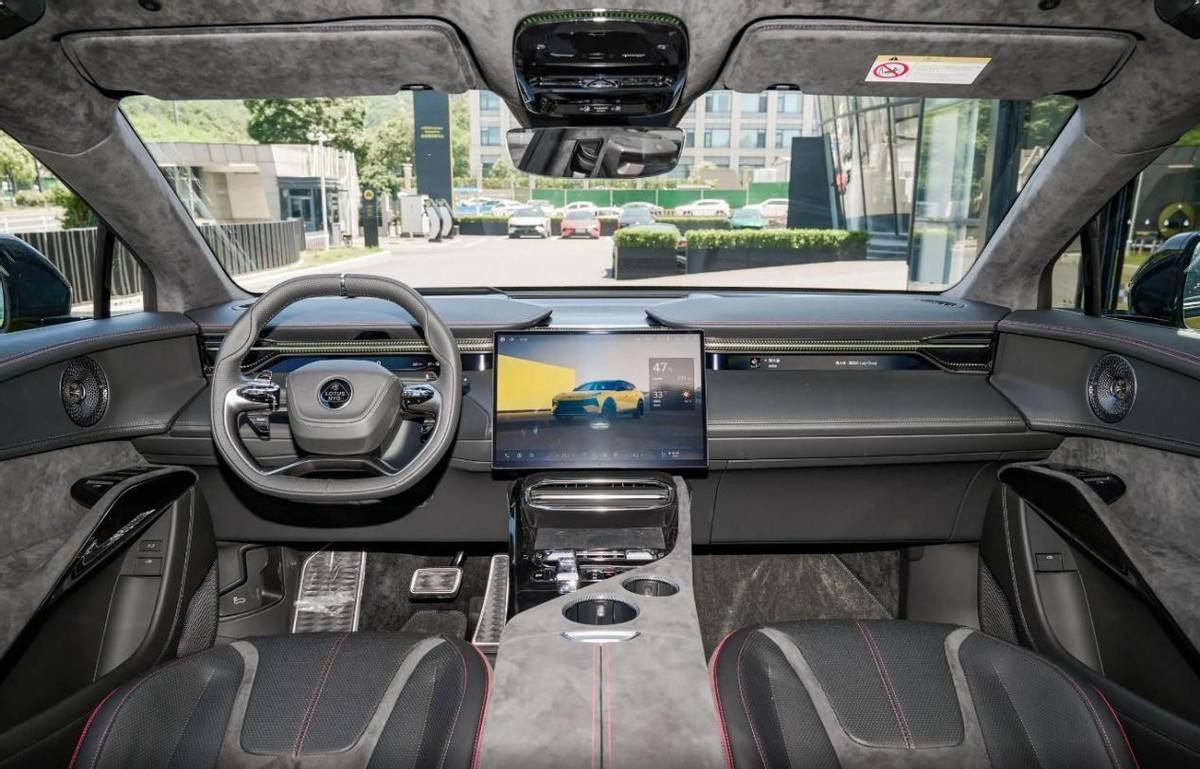 在內(nèi)飾設(shè)計(jì)方面,路特斯ELETRE的內(nèi)飾和外觀還是有較大區(qū)別的,它整體風(fēng)格相對(duì)簡(jiǎn)約,是大家較為熟悉的布局。中控屏作為內(nèi)飾核心,尺寸達(dá)到了15.1英寸,屏幕邊框偏窄,屏占比較大,UI界面簡(jiǎn)約大方,同時(shí)底層操作邏輯清晰,對(duì)于使用者來說,幾乎沒有什么學(xué)習(xí)成本。前排座艙比較吸睛的設(shè)計(jì)是窄屏液晶儀表,UI界面采用幾何拼色圖案打底,視覺效果簡(jiǎn)約精致,強(qiáng)調(diào)品牌的電動(dòng)化的特征。方向盤采用三幅式平底設(shè)計(jì),盤面采用縫線包裹處理,觸感緊致舒適,搭配內(nèi)飾局部采用的翻毛皮面料,內(nèi)飾氛圍感精致舒適。