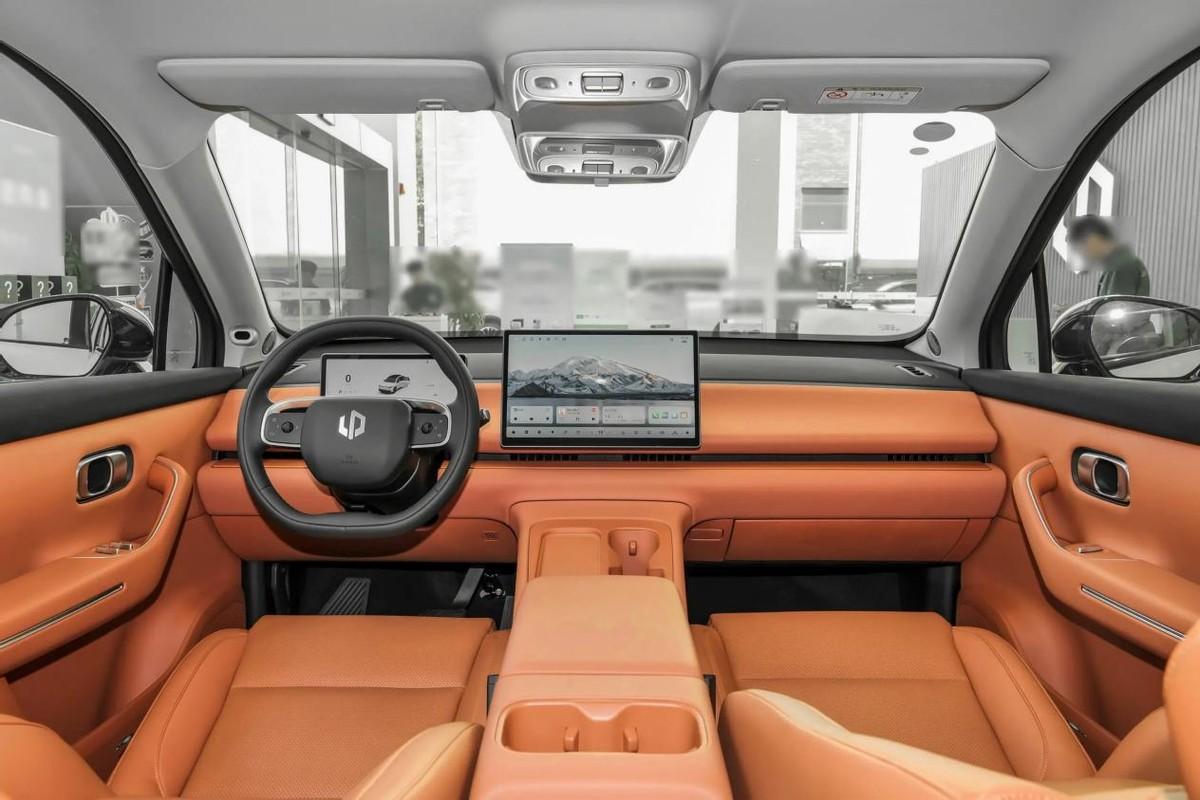 座艙內零跑C10依舊使用了極簡設計理念,中控臺上的平直線條將臺面進行分隔,液晶儀表和懸浮式中控屏也是方正輪廓。此外,當前比較流行的雙輻式方向盤、懷擋等元素也出現在車內,看起來更為簡潔。