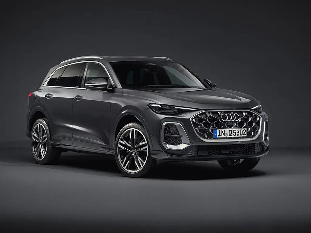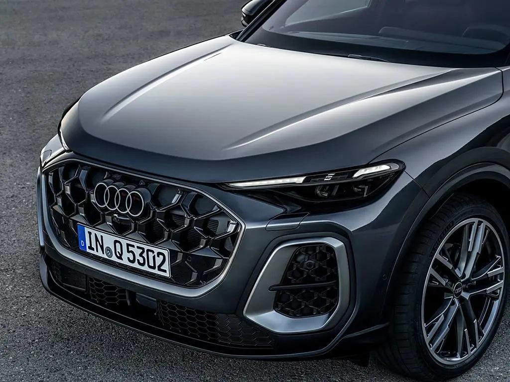 新款奧迪Q5的前臉變得更加立體化了,它的前臉的部分采用的是非常粗獷的設計,有一個多邊形的進氣格柵設計,進氣格柵上采用了非常硬氣的蜂窩式的網格覆蓋,看起來十分的干練。新車的大燈組采用矩陣式的設計,燈組變得很簡約化,效果也很凌厲。大燈的下方是一個占比面積很大的立體空氣導流槽,它看起來十分具有框架感,并且采用了鍍鉻涂裝。車的前臉的底部是梯形的格柵,最底端采用了運動化的前鏟。