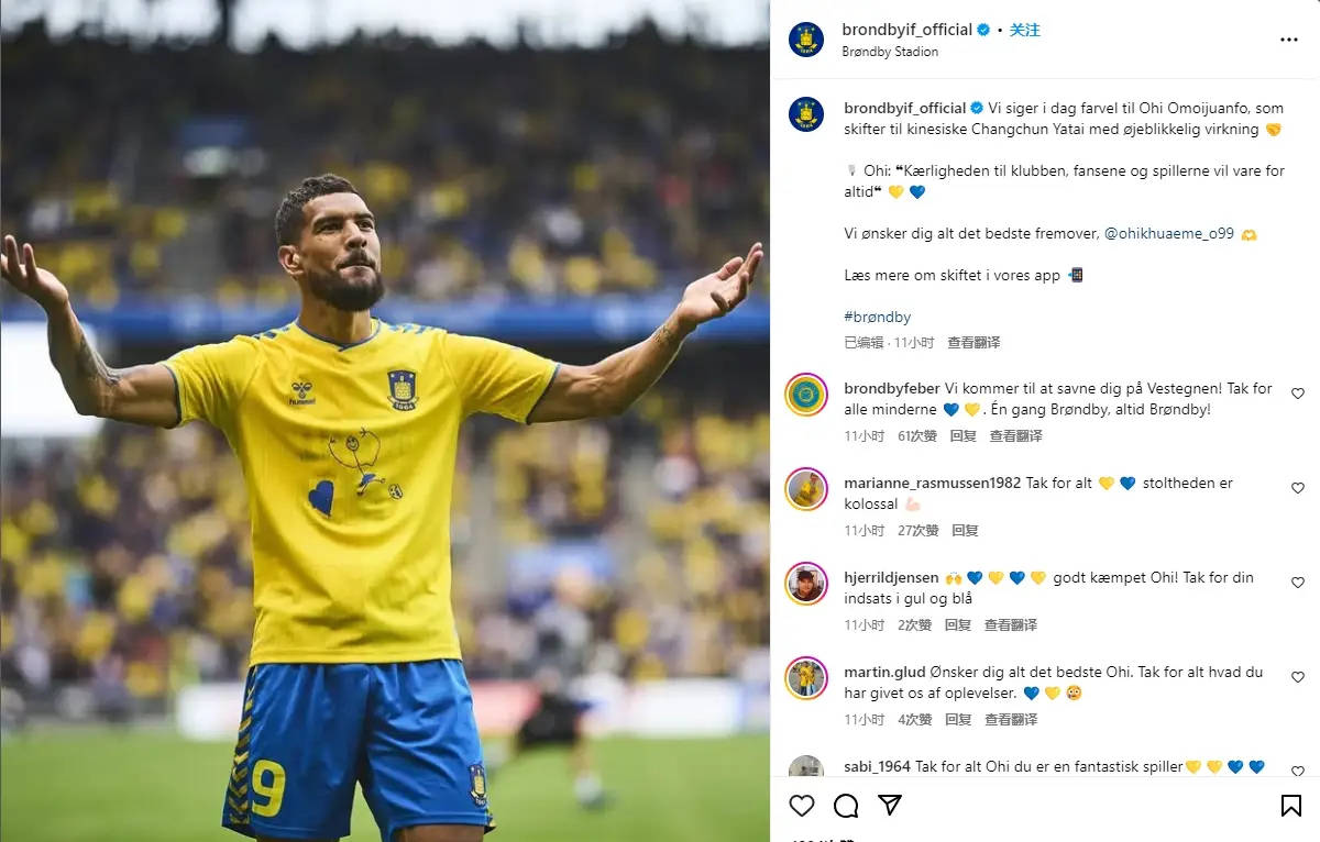 布隆德比官方寫(xiě)道:“今天要向奧伊-奧莫伊胡安弗告別,他轉(zhuǎn)會(huì)加盟中國(guó)球隊(duì)長(zhǎng)春亞泰。”