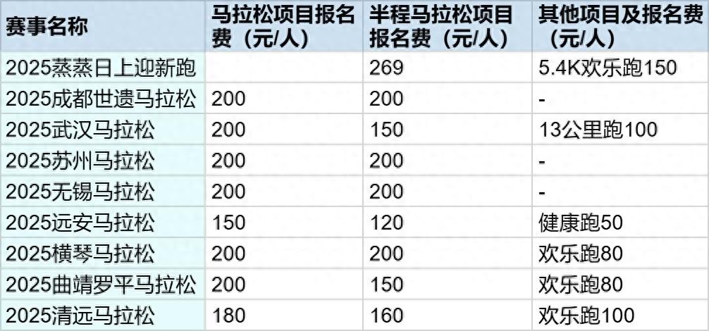 根據(jù)統(tǒng)計,馬拉松賽事報名價格確實在上漲:2023年左右全馬的平均價格基本都在150元及以下,半馬價格在100元及以下;而到了2024年,一些馬拉松賽事的價格開始上調,全馬逼近200元;到了2025年,多項馬拉松比賽的全馬項目單價基本都達到了200元,跨入了新的價格門檻。