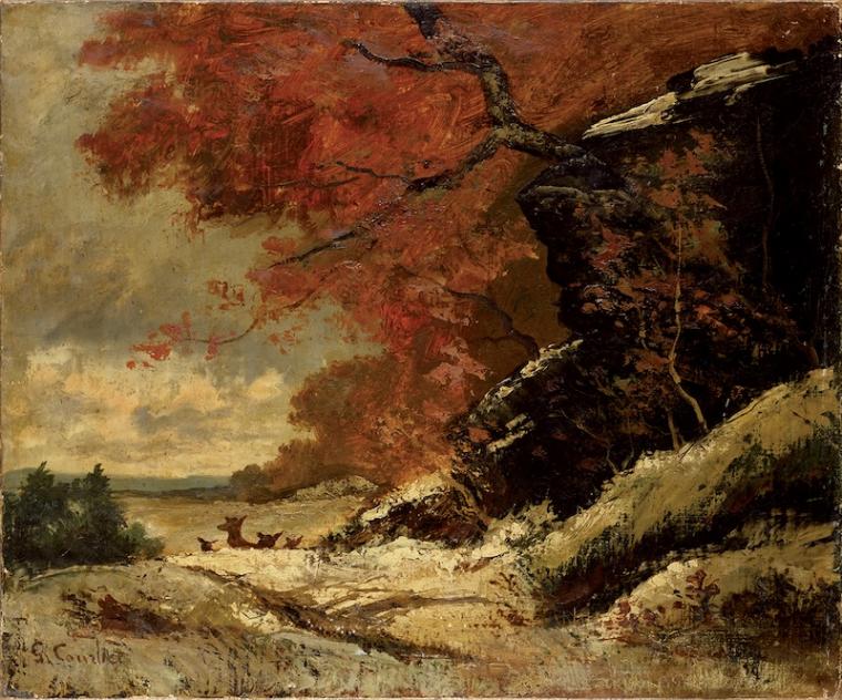 庫(kù)爾貝、柯羅和馬奈代表著率先打破堅(jiān)冰的力量,他們受過(guò)學(xué)院派的技法訓(xùn)練,卻熱衷通過(guò)表現(xiàn)現(xiàn)實(shí)生活和日常風(fēng)景挑戰(zhàn)學(xué)院傳統(tǒng)。在這個(gè)單元,派對(duì)中最先到來(lái)的賓客們有著鮮明的個(gè)性:庫(kù)爾貝堅(jiān)持繪畫(huà)只能涵蓋真實(shí)與實(shí)際存在的事物,以現(xiàn)實(shí)主義的風(fēng)格描繪弗朗什-孔泰的地方風(fēng)景;柯羅善于刻畫(huà)寧?kù)o詩(shī)意的鄉(xiāng)村景致,他與巴比松畫(huà)派關(guān)系密切,而后者最早嘗試于自然中寫(xiě)生,對(duì)印象派意義深遠(yuǎn);馬奈則擅長(zhǎng)以大膽而狡黠的方式賦予傳統(tǒng)圖式和創(chuàng)作原則以新的意義——在一個(gè)古老故事的外殼下,實(shí)際卻是一片真實(shí)的“當(dāng)代”巴黎近郊風(fēng)景。