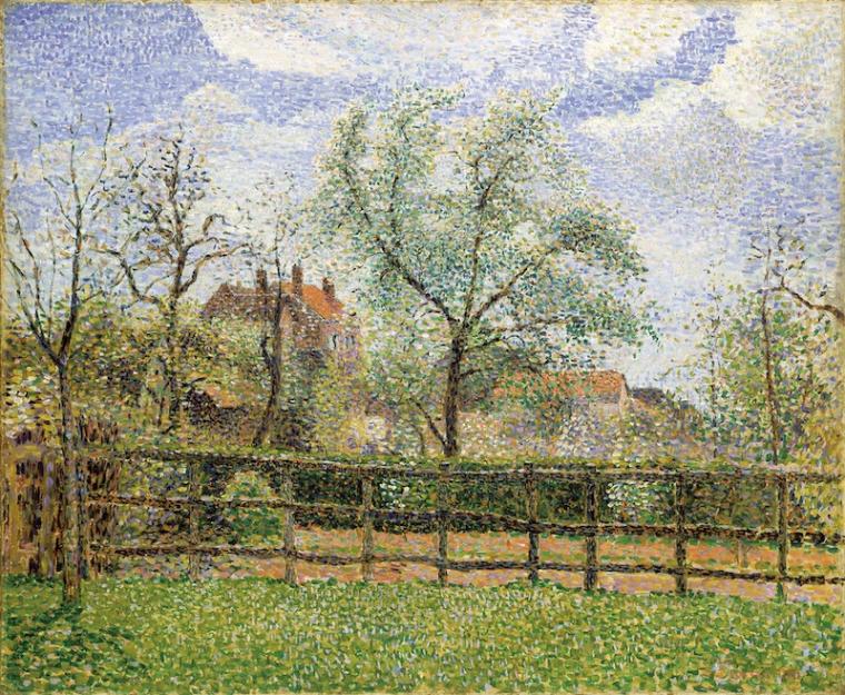 卡米耶·畢沙羅,《埃拉尼的晨曦下盛開(kāi)的梨樹(shù)》,1886年,布面油畫(huà),POLA美術(shù)館藏