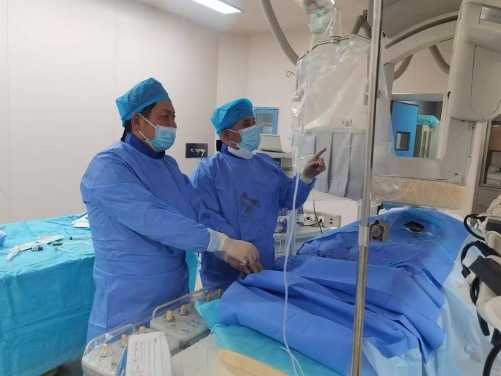“一到這里,我們就馬上投入救援工作,有的同事因高原反應強烈,還需要吸著氧做手術。”狄揚說,在抵達醫院后,他與醫療隊員們前往各自科室了解傷員情況,有3名重癥患者被分診到了他所在的普外科,其中有1名危重的多發傷患者。“這是一名40多歲的男子,在地震中被石頭砸中,骨盆多處骨折還有移位,腹部出血,出血量一直很大。”在與當地醫生進行病例討論后,狄揚決定與介入科醫生馬曉云,連夜為患者進行一場微創介入手術。