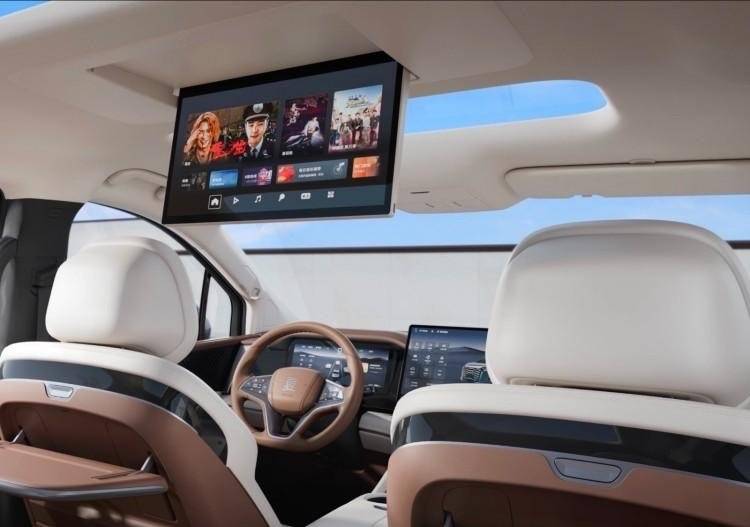 車內配有15.6英寸吸頂娛樂屏、車載冷暖冰箱、二排雙獨立Nappa真皮座椅,包括電動調節、通風加熱、按摩及腿托等功能(二排座椅)也是一應俱全。