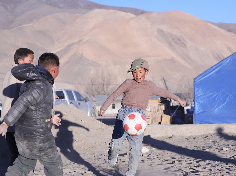 足球,或許可以成為開解孩子們的一個好方式。汪海鯨說,西藏當地的很多孩子都喜歡踢球,這項運動的開展條件又比較簡單,有個球,有塊空地,就可以聚集好幾個孩子一起打發時間、活動開、增強交流,“比孩子們待在帳篷里亂想好多了”。